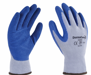 - Guante fabricado de poliéster con algodón, con revestimiento de latéx azul en palma, puño tejido de punto ribeteado.